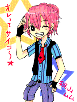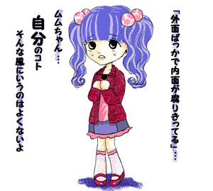 ムムちゃんが描いてて一番楽しかったです。ムムちゃんはいろんな髪型しますが、この頭の上でちょんまげみたいな髪型が一番好きですv服も、「とにかくドハデ」を念頭に考えてみました。